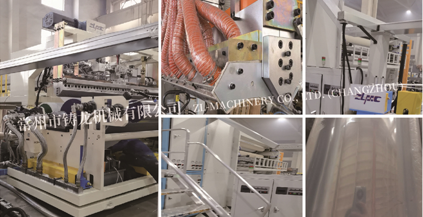 鑄龍ZLX-SE系列主要用于生產膠膜/背板膜隔膜類特種膜。該系列包含利用EVA/POE以及PVDF、PE等具有特定光電化學性質的樹脂,利用單螺桿以及共擠法工藝擠出生產E膜/P膜光伏電池封裝膠膜/背板膜的光伏膜設備。也有利用EVA/PVB等熱層壓材料通過擠出、回火定型等工藝生產玻璃夾膠膜的機組。在運用領域,還有利用PE/PP聚烯烴基樹脂進行植晶,配合擠出拉伸工藝生產隔膜的干法鋰電池隔膜設備,相關設備可按客戶具體工藝流程要求定制。
